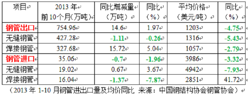 據(jù)悉,2013年前10個(gè)月鋼管產(chǎn)量6831.1萬噸,同比凈增658.2萬噸,同比增10.66%;鋼管表觀消費(fèi)量為6111萬噸,同比凈增642萬噸,增11.74%。